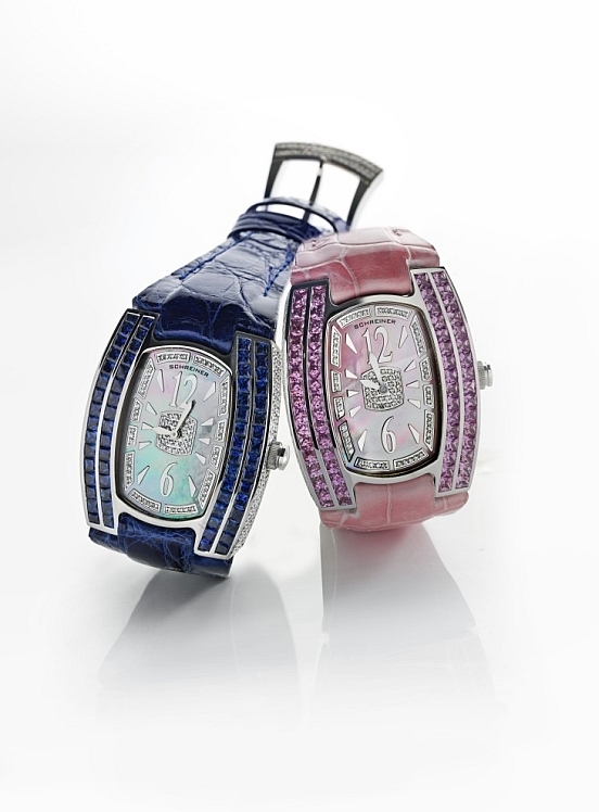 with 18,18 cts of pink and blue princesscut Sapphires and mounted with 5,88 cts round Diamonds.